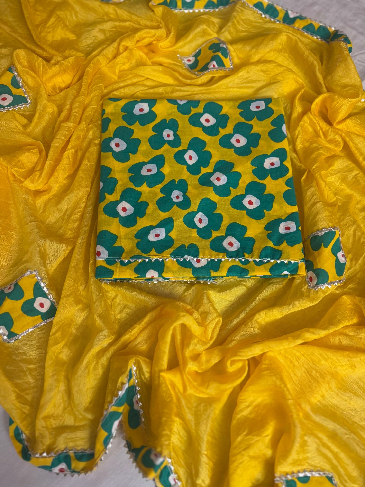 Cotton- Pum pum dupatta lace Shirt Mirror work