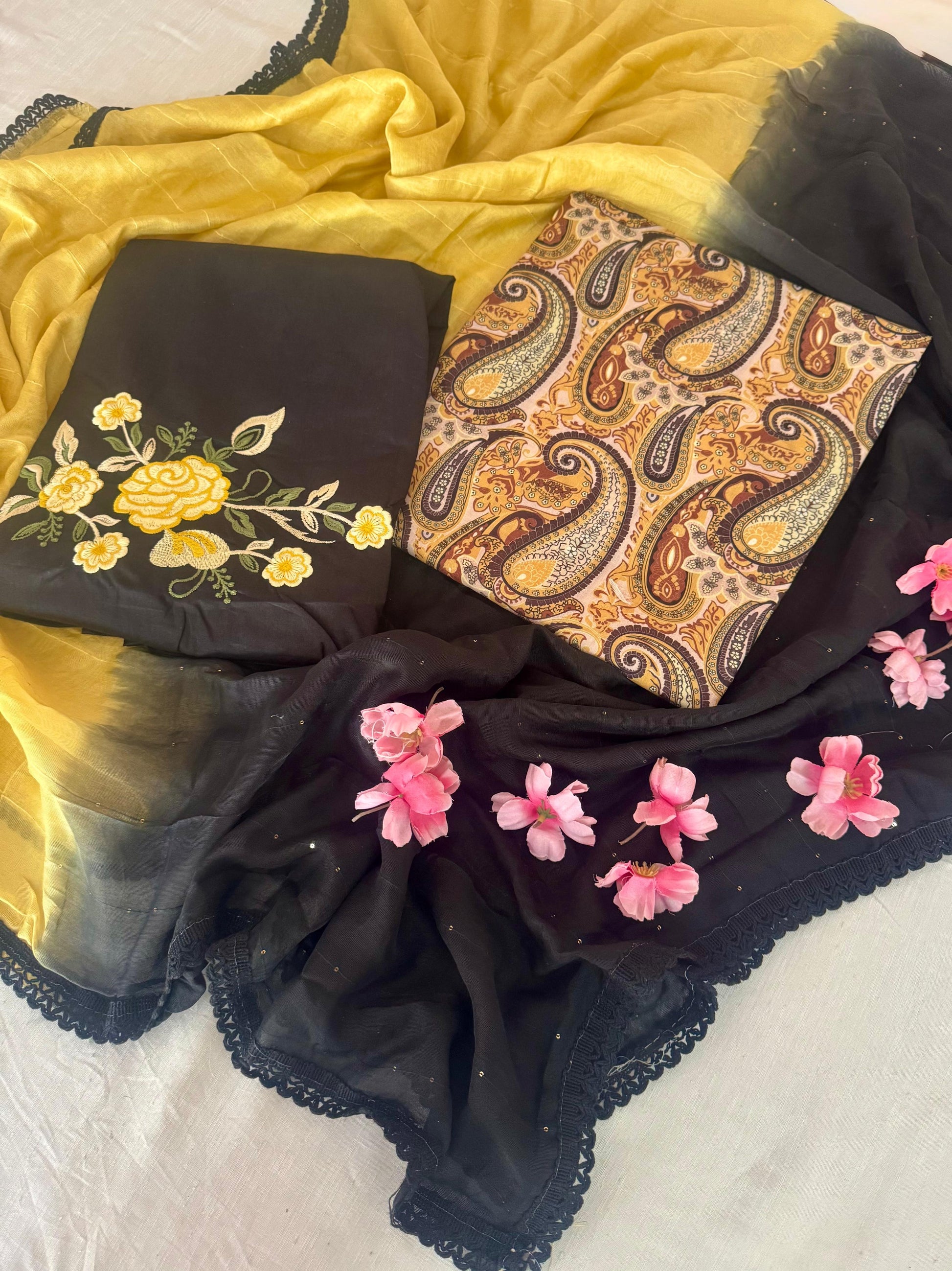 This very soft cotton outfit is designed to provide you with exceptional comfort and relaxation. Featuring intricate bottom thread work and vibrant shirt prints, it comes with a beautiful multishade dupatta available in six colors. Perfect for everyday wear, it combines style and ease to support your busy lifestyle.