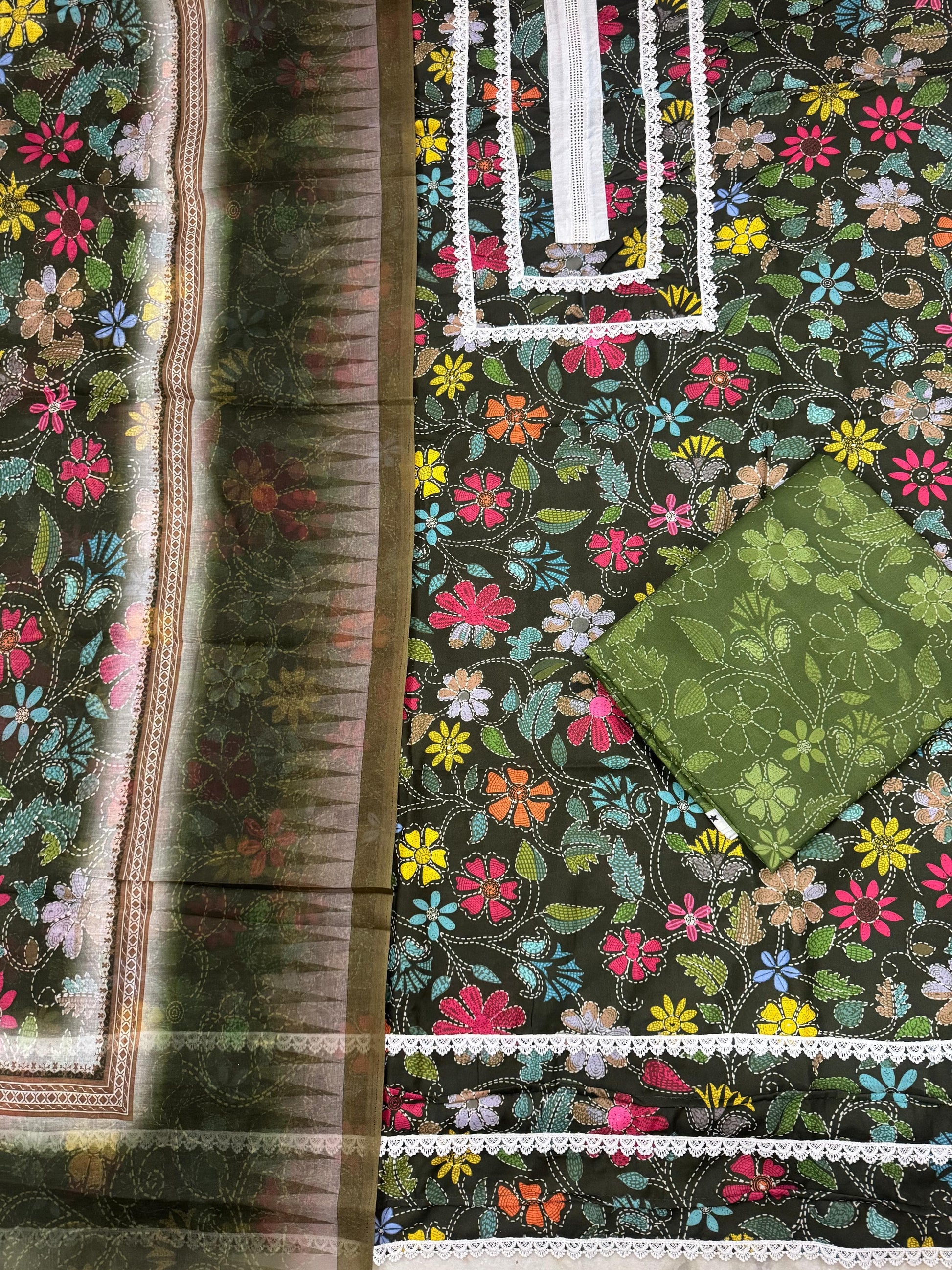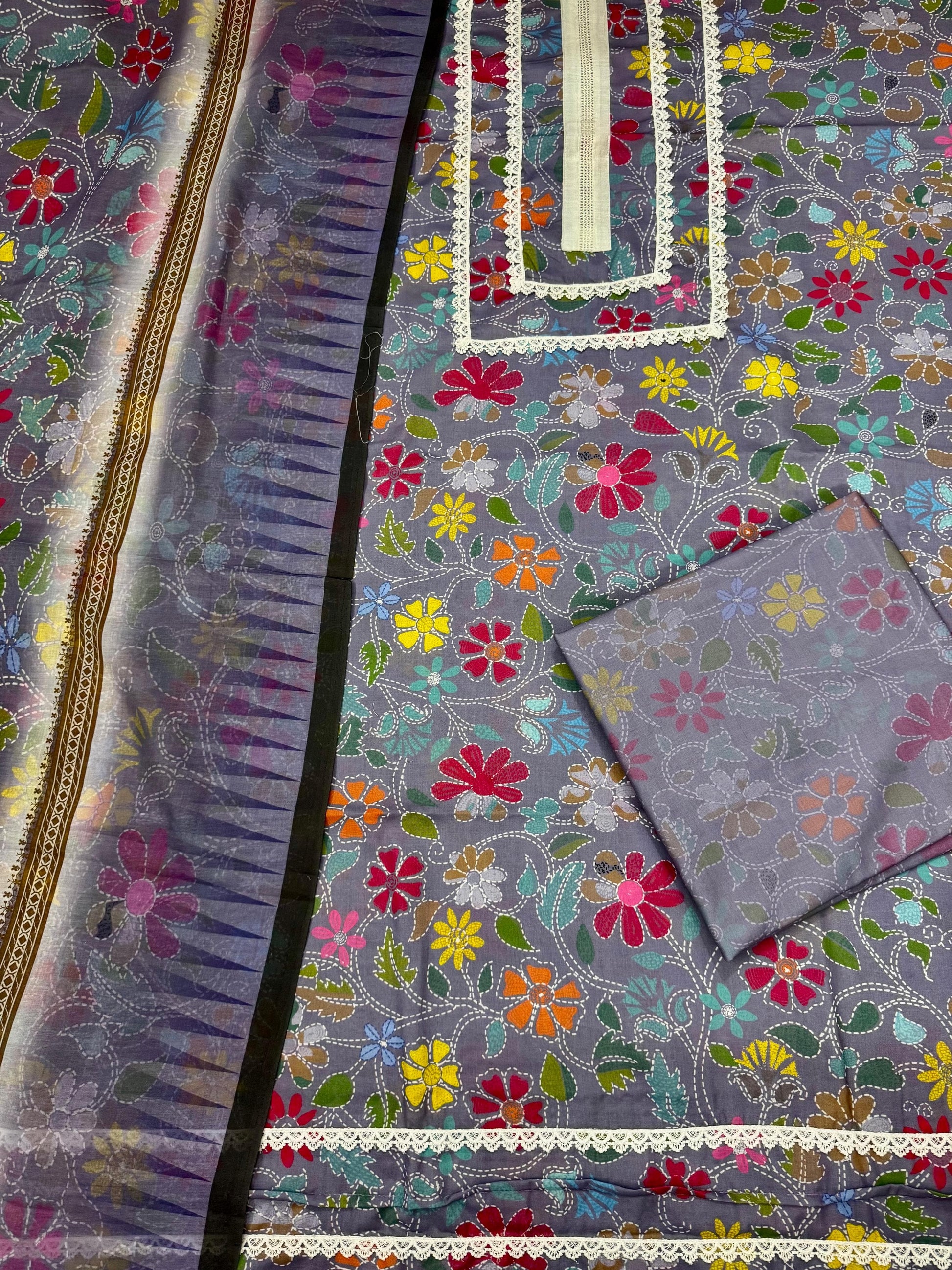 The fabric also includes intricate lace work trim, adding an extra touch of elegance to your projects. Please ensure to follow the washing instructions carefully to maintain the quality of the fabric. There are 4 colors variant.