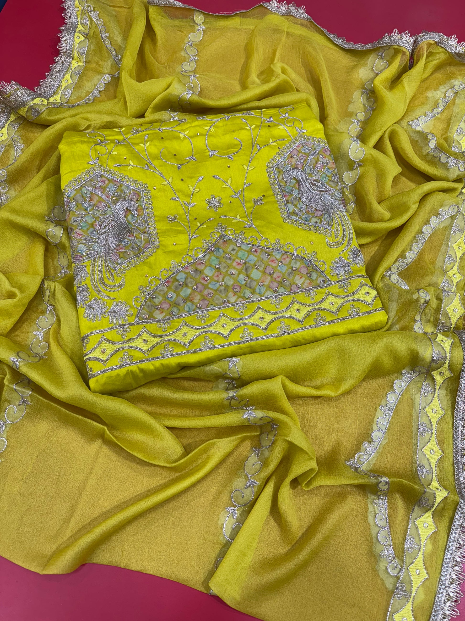 This all over cotton suit is perfect for any occasion, with stunning handwork and a matching handwork dupatta. Made with 100% cotton, it is not only comfortable but also easy to wash. Simply follow these care instructions: - Machine wash cold