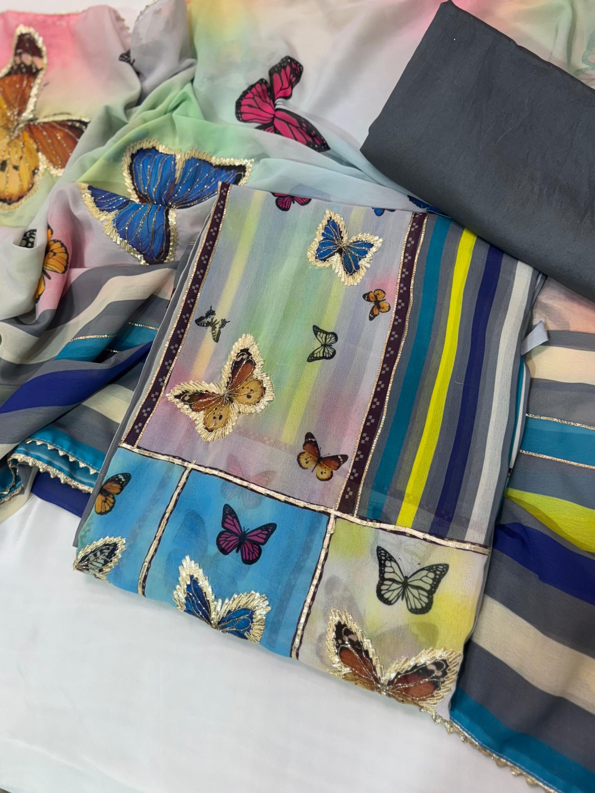 Grace meets glamour in this elegant Georgette Suit Set, designed to make you feel effortlessly beautiful. Crafted from lightweight and flowy georgette fabric, this outfit drapes like a dream and adds a touch of sophistication to every step you take.