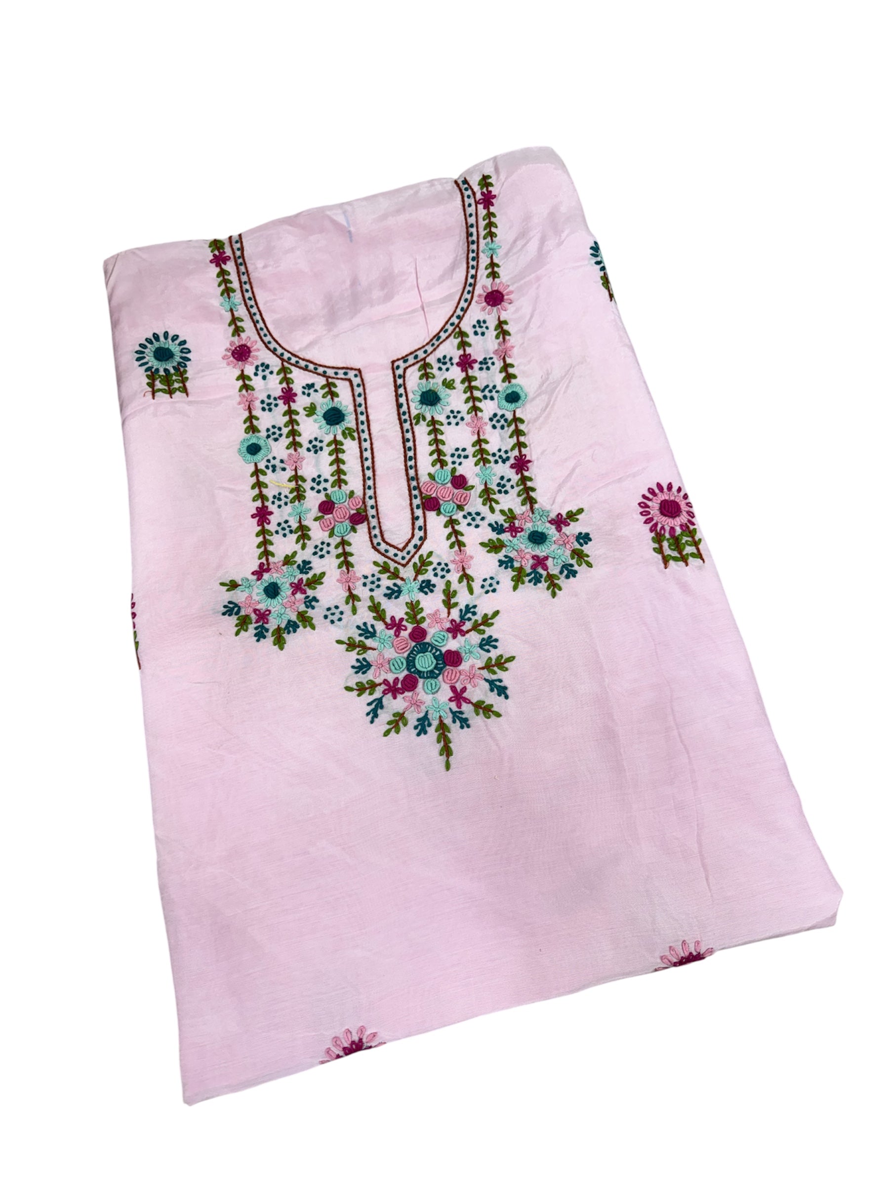 Pink Embroidered Maslin cotton Intricate Multicolor Floral Design Kurti (2.5 Meter)